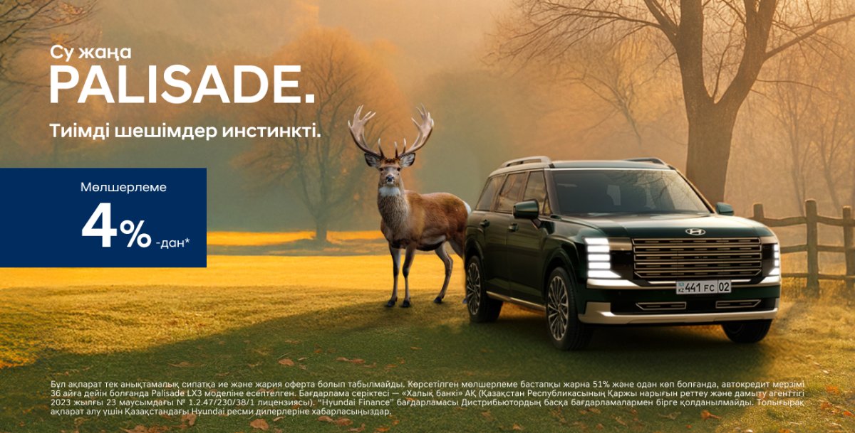 Су жаңа PALISADE автокөлігін бар болғаны 4%-бен сатып алыңыз!